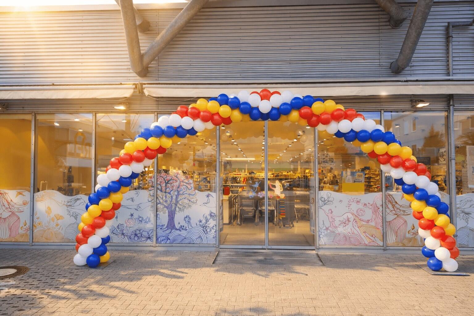 Bei unseren Ballonbögen können Farben frei kombiniert werden, so dass eine perfekte Anpassung für Ihre Marke gewährleistet ist. Auch beim Muster und in der Größe gestalten wir die Bögen maßgeschneidert.