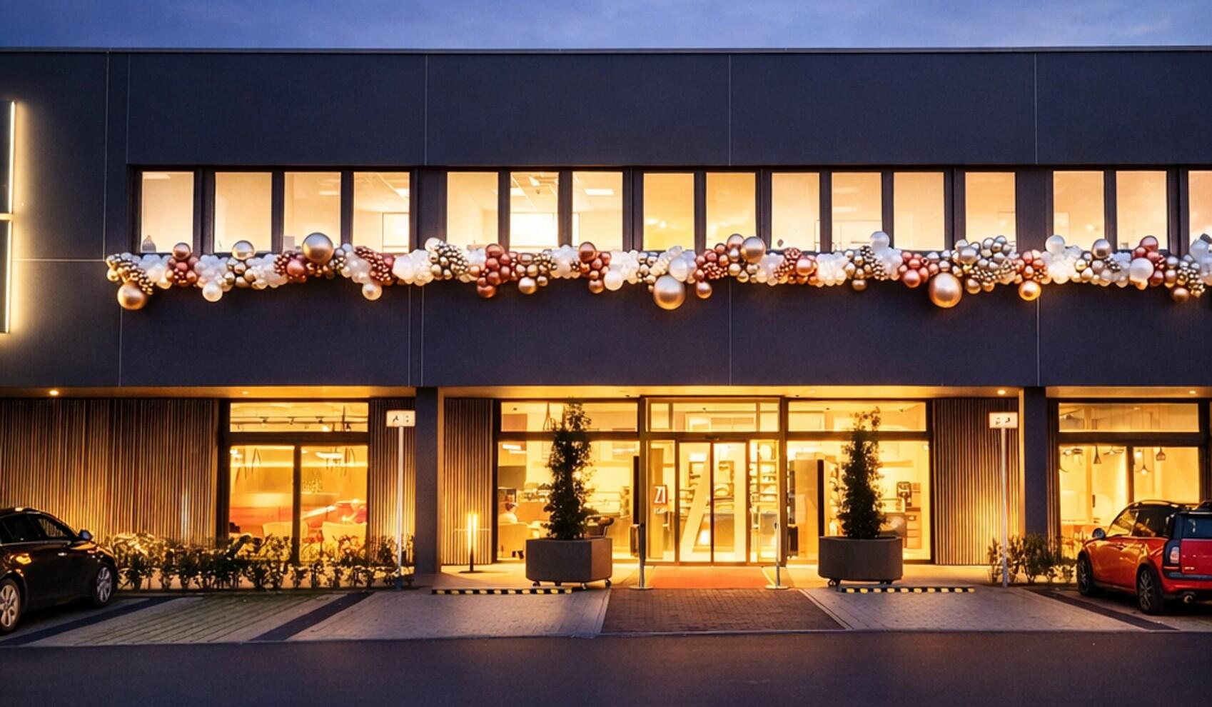 Für Firmenkunden, Agenturen, Event Locations, den Einzelhandel und Einrichtungen der öffentlichen Hand dekorieren wir mit Ballons Eingangsbereiche, Schaufenster, Büro- und Konferenzräume oder Häuserfassaden, Messehallen und große Sportstätten in vielfältigem Stil.